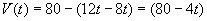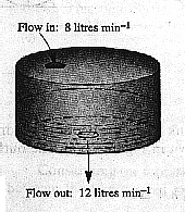 After time t (in min) 8t litres have entered the tank and 12t litres have left. Also, at t = 0, there were 80 litres in the tank. Therefore the volume V of liquid in the tank at time t is given by