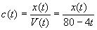 c(t) = (amount of salt in the tank at time t )/(volume of liquid in the tank at time t)