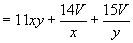 For simplicity, let us denote 147,840 by V. then xyz = V, so that z = V/xy. We substitute this expression for z into the objective function (1) to obtain a heat-loss function g(x, y) of two variablesnamely