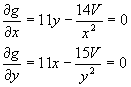 To minimize the function, we first compute the partial derivatives with respect to x and y; then we equate them to zero.