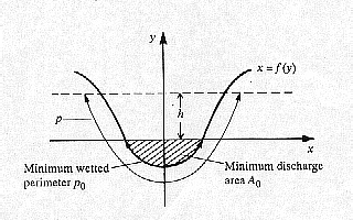 ). Given the channel section for minimum flows (that is A0 and p0),the objective is to design a channel such that V has the same value for all larger discharges.